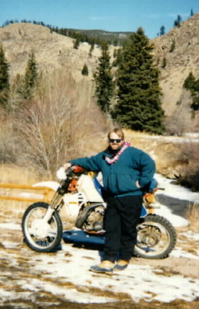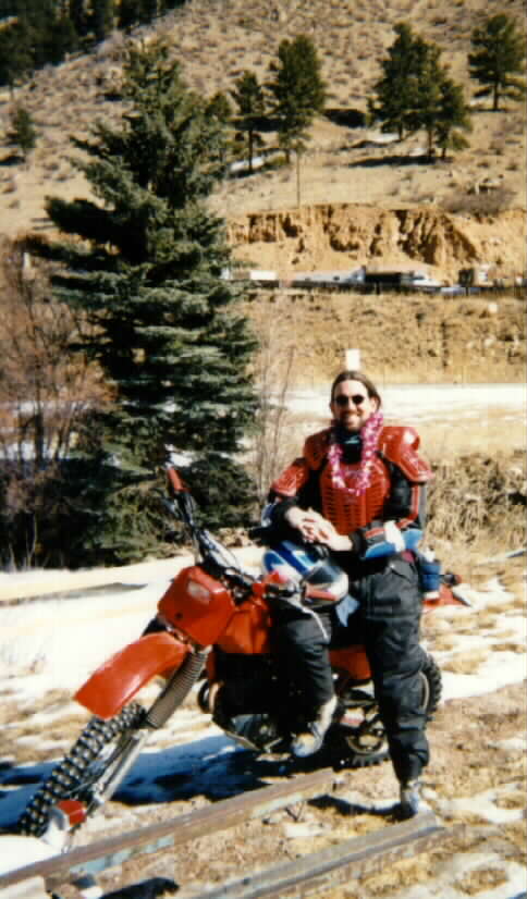 Nonetheless, some things are too important to let little things like tickets stand in the way. Besides, when you're stupid enough to ride over a 12,000 ft pass in February, pulling an untagged trailer is small potatoes. So at 5:45am, I pulled out of my driveway and headed into Boulder. After an (thankfully) uneventful drive down the canyon, I got to Joel Frahm's house just as he was putting the last pieces on his KTM after some emergency radiator repairs. We loaded his KTM onto his three rail trailer, then put my '82 XR500R aboard. I threw a big duffle of bike gear into Joel's Wagoneer, he grabbed a handful of CDs and we were off. The drive down to Golden was nice, as the morning was slightly chilly and the sunrise very colorful.