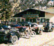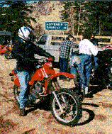 Joel and I walked down Guanella Pass road to the camp area where we found a handful of vintage bikes and their respective riders. Tharp headed rode by in his old Beemer sidecar rig heading up to the restaurant. A beautiful Norton Commando, another old Beemer hack and stunning late 40s Harley rig were all squirrel away in the woods. As Joel and I arrived back at the parking area, the XR400 rider started showing off with massive wheelies and lurid rear tire slides. While he was busy acting stupid, more bike transports continued to arrive. Steve "Scooter Scum" Johnson showed up with his KX-321. A van arrived with Jeff Deeney (and his XT 600) and two of his friends (both with Honda XRs).