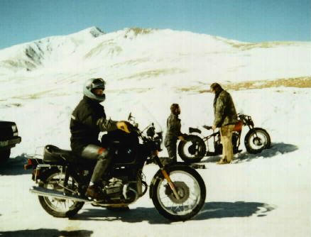 More general craziness took place with various attempts to climb the snow banks. While all this was going on, Lazslo Nemeth arrived on his R-100. Undoubtably the largest bike to make the top without the aid of traction devices.