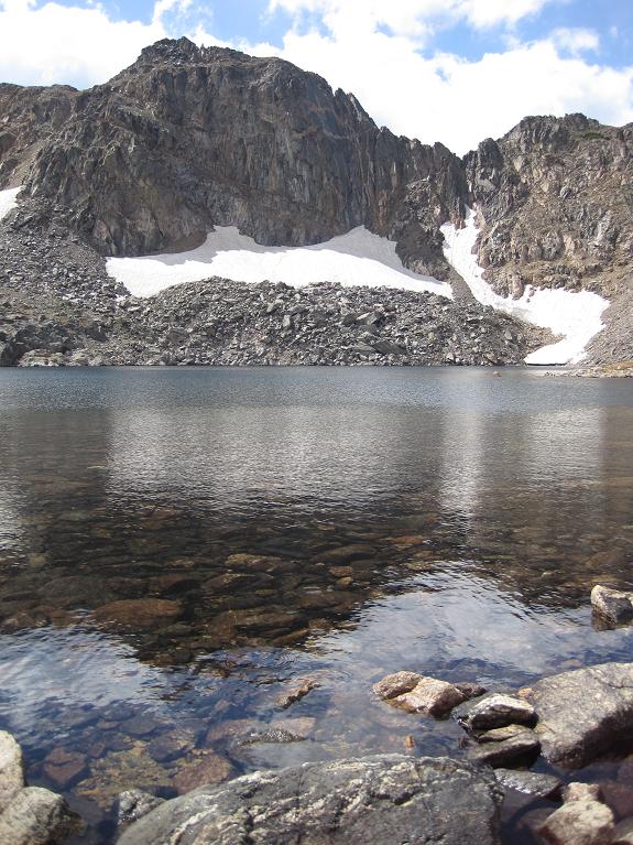 22) Crater Lake, CO - June 28, 2009 - On a spectacular summer day, our friend Sabrina joined the hiking crew for a trip up to the East Portal trailhead. We decided to try a new trail: the Crater Lake spur off the Heart Lake trail. We climbed up to the main lake and enjoyed lunch on a lake-side rock before heading back down. The total was about five miles round trip with about 1400 foot of elevation gain.