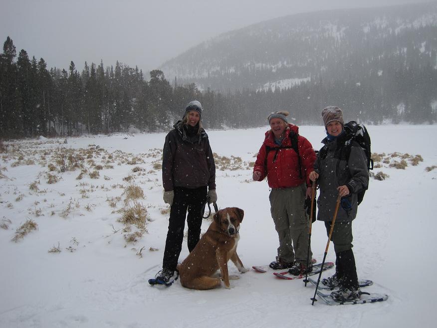 3) Heart Lake trail, CO - January 10, 2009 - Our hiking buddy Holly had her niece Megan visit so we took her out for her first snow shoeing experience. It was a cold (18F!) and windy day, so we headed to our old stand-by Heart Lake so we could get out of the wind. It turned out to be a great hike up in the trees with plenty of fresh powder. We did about five miles total, then headed back to town for Indian food and then home for hot tubbing!