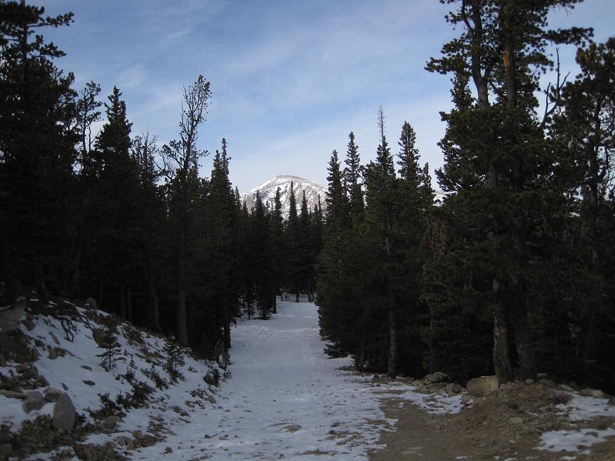 15) Caribou, CO - April 11, 2009 - A combination of low energy, questionable weather and unknown trail conditions had the hiking crew opting for a short hike. We headed to Caribou, thinking wind may have blown the recent snow off the mountain top but found mixed trail conditions and overcast skies. However, crusty snow meant we did the three mile loop as a hike, no snow shoes necessary.