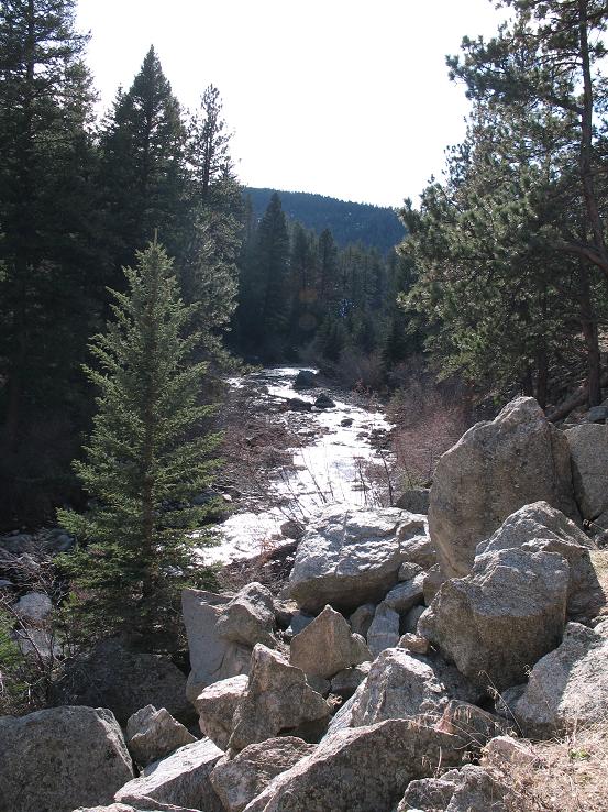 12) Ceran St Vrain, CO - March 14, 2009 - On a beautiful sunny spring day, our hiking gang went out to find a trail devoid of snow and mud. We found partial success with a short hike on the Ceran St Vrain trail. We had a pleasant 5 mile hike and even saw a moose cross the trail near our turn-around point.