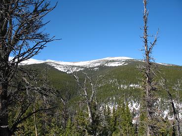 21) Diamond Lakes trail, CO - May 31, 2009 - The crew got together with the optimistic goal of hiking up to Diamond Lake, just off the Arapahoe Pass trail. It was a beautiful sunny day, perfect for hiking, but we underestimated how much snow was still up in the high country. We only made it about a mile and a half up the trail before big snow banks and an unmarked trail turned us back. Still, a nice (if short) hike with great views of the snow covered mountains.