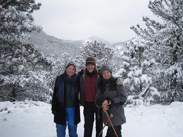 39) Sourdough Trail, CO - November 28, 2009 - For a little post-holiday hike Alan, Jonna and Lyle headed up to Brainard Lake. In this case, it was to try something different, hiking south on the Sourdough trail from the Red Rocks trailhead. (We usually either hike Sourdough northward from further south or heading north from the Red Rocks trailhead.) We actually headed out on the wrong trail, hiking the Lefthand Reservoir road but then cut over to Sourdough on the Little Raven trail and continued south. A nice, short hike on new trails...about three and a half miles total with about 400 ft of elevation gain.