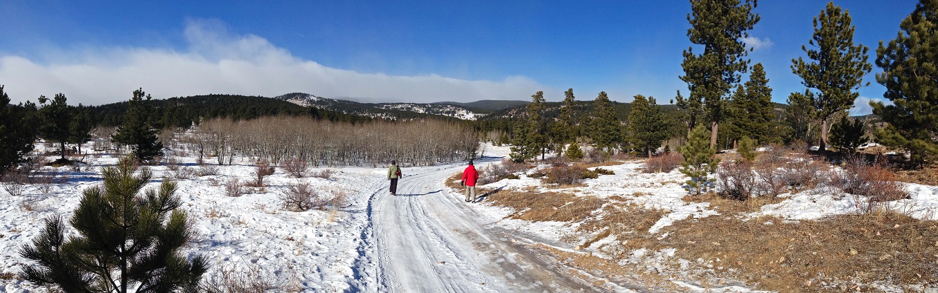 2) Betasso Preserve, Boulder County Open Space, Boulder, CO, January 10, 2016 - It was just Lyle and Alan this cold, clear Sunday for a loop through the pines in Boulder County's Betasso Preserve. Fresh, crunchy snow meant the trail wasn't as icy as we'd feared and bright sunshine knocked the edge off the temperature in the open areas. We walked both the main Betasso loop as well as the Benjamin loop extension. A pleasant, peaceful 7.2 miles with 700 ft of elevation gain.