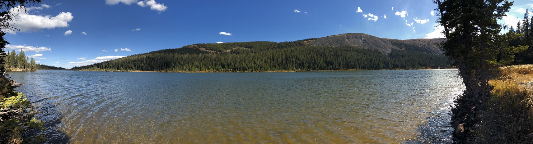 32) Long Lake, Brainard Lake Recreation Area, Ward, CO, September 23, 2018 - We got together with our good friend Desiree and her partner Phillip to celebrate her birthday with a hike in Brainard Lake Recreation Area. It was a perfect day for a hike - A crisp Fall day with a few fluffy white clouds in the sky and colorful leaves still clinging to the trees. This was a rare time when we went for a hike in the late-afternoon so we also got some nice "golden light" as the sun dropped towards the mountains in the west. We hiked the Jean Lunning trail around the south side of Long Lake but we split off from Desiree and Phillip at the trail up to Lake Isabelle. They continued on uphill while Jonna and I returned to the trailhead. A splendid afternoon in the mountains! 3 miles with 125 feet of elevation gain.