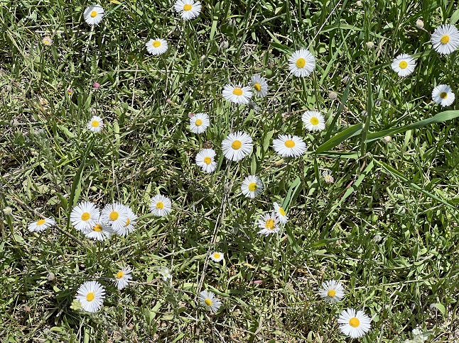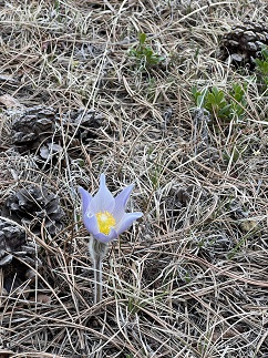 25) Homestead, Shadow Canyon and Mesa Trails, South Mesa Trailhead, Boulder Open Space & Mountain Parks, Boulder, CO, April 2, 2023 - The first tiny little wild flowers of the spring have poked their pedals out of the ground! There were only a couple and they were very small but nothing says winter is starting to fade quite like seeing the first wildflower of the year. We met up with Desiree for our usual Sunday hike - The Homestead/Shadow Canyon/Mesa Trail loop from South Mesa Trailhead but this time we started in the morning rather than the evening. Wow, is that trailhead a different experience at 10am! In the evenings it is quiet but in the morning it is mayhem - cars jockeying for parking spots, dogs running rampant, people standing around talking oblivious to the vehicles trying to navigate the parking lot, etc. Fortunately, most of the people are headed straight down Mesa trail so we left the craziness behind once we turned onto Homestead Trail. The trails are now mostly dry so not only has the snow and ice melted but the resulting mud is drying up as well. The weather was warm (70s?!?!) and the sky was so blue it looked unnatural! Like someone turned up the color saturation on the world. Most of the grass and shrubs are still grey-brown but those few little flowers proved that Spring is here! The usual 5.8 mile loop with 1,200 feet of elevation gain.