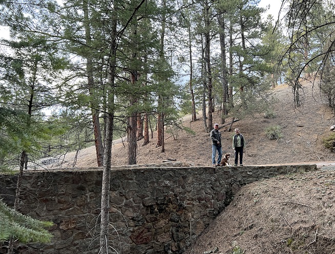 3) Divide Overlook, Chapman Drive/Tenderfoot Trails, City of Boulder Open Space and Mountain Parks, Boulder, CO, January 16, 2023 - Jonna and Alan were heading down to Boulder to run some errands and catch a movie so we decided to head down a little early and do a hike along the way. The Chapman Drive trail is a rather mundane hike - basically a fenced off roadway - but it does have an interesting history as it was build back in the 1930s as part of a series of CCC (Civilian Conservation Corps) projects around Boulder. The old roadway has some beautiful large rock retaining walls supporting some of the sharper switchbacks as the road climbs from Boulder Canyon up to the top of Flagstaff Mountain. About 2/3 of the way up the Tenderfoot Trail comes down and that side trail provides access to the Divide Overlook which gives a decent view westward on the Continental Divide (Honestly, one of the switchbacks on Chapman Drive actually provides a better view but an official "Overlook" makes for a nice hike destination.) We had great weather for a hike and the sunshine had melted out most of the trail (However, the forecast calls for snow every day for the entire upcoming week!) A 4 mile up-and-back hike with 800 feet of elevation gain.
