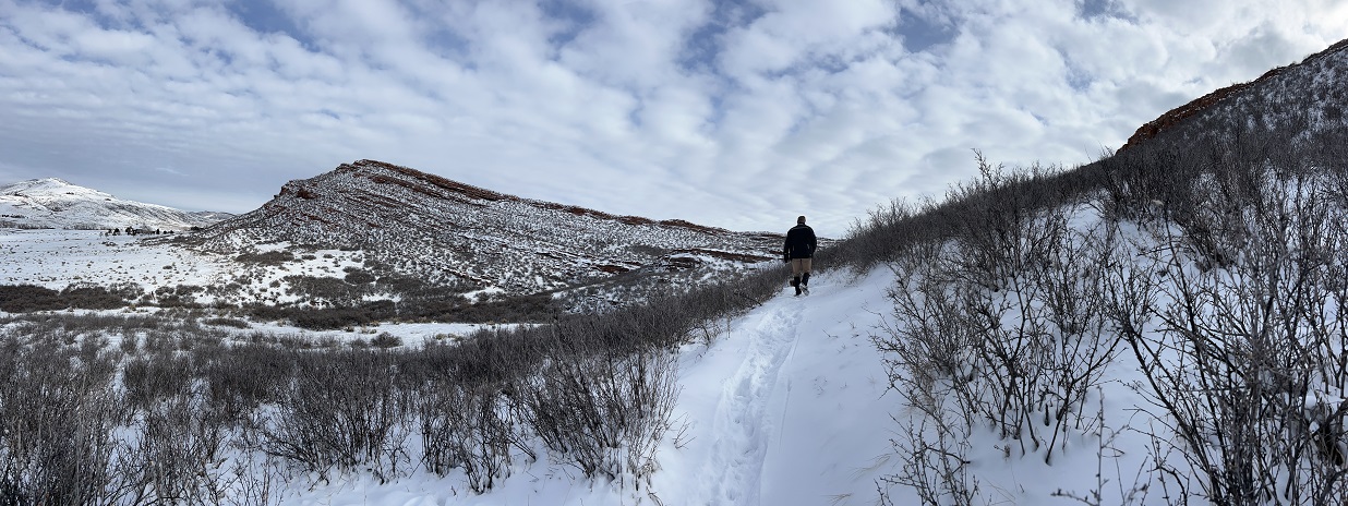 2) Homestead, Shadow Canyon and Mesa Trails, South Mesa Trailhead, Boulder Open Space & Mountain Parks, Boulder, CO, January 9, 2023 - Our hikes in Boulder with our friend Desiree continues in the New Year! We once again met up Desiree at the South Mesa Trailhead for our usual hike, this time with mixed weather. When the sun was out it was reasonably warm but as soon as the sun went behind a cloud and the wind picked up it was bone chilling. The conditions changed about a dozen times while we hiked which meant we were regularly removing or re-adding a layer. The trail was a mix of packed snow, watery ice, mud and even dry ground in places. We did our traditional Homestead Trail going out but then added an extra leg by going up to the bottom of Shadow Canyon before looping back around to Mesa trail. We skipped coming back down on Towhee and instead too Mesa all the way back to the trailhead. We ended the hike with sunlight beaming down and a mostly blue sky. Another enjoyable hike with Desiree and a continuation of a routine we thoroughly enjoyed throughout 2022. A 4.5 mile loop with 900 feet of elevation gain.