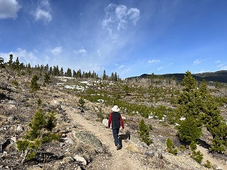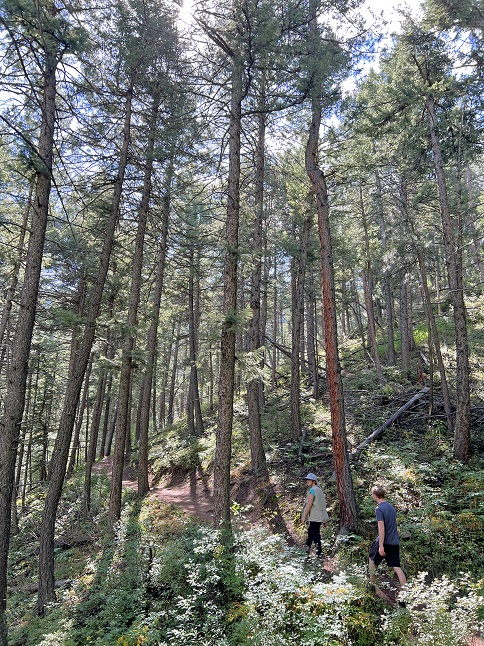 78) Sourdough Trail, Roosevelt National Forest, Nederland, CO, September 6, 2023 - After the last few hike have been big and pretty spectacular hikes, today we fit in visit to one of the run-of-the-mill local trails - the Sourdough trail just a few miles north of our house. This trail lacks the stunning views, incredible landscape and iconic Rocky Mountain scenery that I've been sharing from our recent hikes. It is instead a pleasant trail that winds through the pine forest that blankets much of the Front Range. No "Oh Wow!" moments but a nice place to stretch our legs and get in some more mileage as we trail for our upcoming hiking trip to Patagonia. Even the highlight was pretty mundane - we stopped to watch a fluffy young squirrel dig the seeds out of a pine cone. A 5 mile out-and-back hike wiht 800 feet of elevation gain.