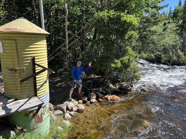 55) South St. Vrain Trail, Ward, CO, July 3, 2023 - Hiking on the Monday of a holiday weekend is just as busy as a Sunday. Alan joined Todd and Rusty pup for a Monday morning hike at a relatively out of the way trailhead but since it was a holiday we were the seventh and eighth vehicles parked at what I'd hoped would be an empty trail. Oh well... Nonetheless, we had awesome weather so we ventured forth despite the hikers and campers on the trail. A couple of years ago, Todd and Alan hiked this trail hoping to reach a lake up the shoulder of a nearby peak. That hike was a bust as deep snow turned us back. So we thought we'd give that another shot. No snow this time but instead we found that the side trail up to the lake has been closed so we stuck out once again. It was still a nice hike but it didn't quite live up to expectations. A 6 mile out-and-back with 900 feet of elevation gain.