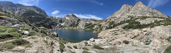 79) Pear Lake, Wild Basin Trailhead, Rocky Mountain National Park, Allenspark, CO, September 2, 2023 - We loved our hike into beautiful Rocky Mountain National Park so much last Friday that we decided to do it again this Friday. We picked a different destination this time - Pear Lake. We've done the hike into Finch Lake a few times over the past 25 years but have never done the hike past that up to Pear Lake so now that we're doing longer hikes we gave that a try. We started at the same trailhead as last week and thus enjoyed the same sights for the first couple of miles of the hike - North Saint Vrain Creek, Copeland Falls, Cony Creek and Calypso Cascades. However, at that point we turned south on Finch Lake Cutoff Trail. As we climbed out of the North Saint Vrain Creek valley we got a spectacular view of both Longs Peak and Mount Meeker to the north. Then we turned onto the Finch Lake-Pear Lake Trail and continued to climb. When I first hiked this trail around 25 years ago there had recently been a fire that had leveled about a mile of this trail. Now, after all this time, a forest has grown back in filling this once barren hillside with pine and aspen. It was a heartwarming vision of what the area near our house that burned in 2016 will one day look like again. The trail dropped down in the valley that contains Finch Lake but after a quick look we continued past that which involved a steady climb up the Cony Creek valley and then forking off to follow the Pear Creek valley up to Pear Lake, which sits in a bowl just below treeline on the south side of Copeland Mountain (Bluebird Lake, which we hiked the previous week, was less than a mile away to the north but on the other side of the 13,166 foot tall Copeland Mountain). It was a little too breezy to hang out by Pear Lake for long so we backed a little way down Pear Creek where we had a picnic lunch listening to the burble of the creek. We reversed back down past Finch Lake and to the Finch Lake Cutoff Trail junction. From there we turned south and followed the Finch Lake Trail all the way back down to North Saint Vrain Creek and to where we'd parked. It was another long hike and we were once again exhausted when we got back in the car but it was also very satisfying to visit another remote lake in the natural utopia that is Rocky Mountain National Park. A 14 mile loop with 2,700 feet of elevation.