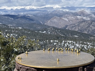 31) Green Mountain, Boulder County Open Space & Mountain Parks, Boulder, CO, May 7, 2023 - After a couple of weeks off Jonna and Alan were back on schedule doing a Sunday hike with our friend Desiree. However, we mixed things up this time by meeting at the top of Flagstaff Mountain and hiking south from there summit neighboring Green Mountain. We did a loop by going part way up Ranger Trail and then turning on EM Greenman trail. We used that to climb all the way to the top. After a break to enjoy the sunshine and scenic views we came down the West Ridge trail to where it meets Ranger trail. We turned onto Ranger and took that all the way back to the trailhead. We started up under dark clouds but those passed by without dropping any rain and for the decent we and mostly clear sky so we lucked out with the weather. A nice hike and a chance to hear about Desiree's recent trip to France. A 4 mile loop with 1,500 feet of elevation gain.