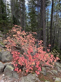 80) Buchanan Pass Trail, Roosevelt National Forest, Camp Dick Trailhead, Peaceful Valley, CO, October 2, 2023 - Jonna and Alan had planned to do another big hike on Monday morning but after a busy weekend we were feeling pretty drained so we took the morning off and didn't get out to hike until just before lunchtime. As a result, we cut back our goal for the day and went for a more moderate hike instead. The plus of this is that we headed for a trail we hadn't been on in something like 15 years - The Buchanan Pass trail starting at the Camp Dick trailhead. This is a trail that leads into a network of trails, including going over Buchanan Pass if you go far enough, so it can be as long a hike as you want but the elevation gain is very gradual so it makes for easy hiking. The trail runs alongside the Middle fork of St. Vrain Creek. We had nice Fall colors - most of the aspens had already dropped their leaves but the ground cover and creek-side bushes were all draped in yellow, orange, red and brown. As we neared the spot where we planned to turn around there were actually some open areas where we could enjoy the views of both Sawtooth and St. Vrain Mountains. After a break to eat our snacks (and for Jonna to soak her feet in the creek) we turned back down the trail to return to the trailhead. It was a lovely hike that gave us more distance training but was also mild enough we didn't push ourselves beyond the amount of enery we had available. The final bonus was that the clouds that rolled in while we hiked held off one dropping rain until the very moment we got back to the parking lot! An 8 mile out and back hike with a mellow 1,000 feet of elevation gain.