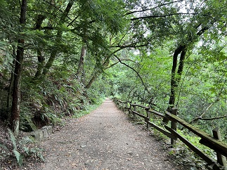 66) Spring Trail, Reinhardt Redwood Regional Park, East Bay Regional Park District, Oakland, California, August 2, 2023 - Jonna and Alan capped off our Bay Area trip with, what else, another hike. Jamie drove us up the ridge behind his neighborhood to the Redwood Gate of Reinhardt Redwood Regional Park. We strung together a series of trails: Stream Trail, Mill Trail, French Trail and Tres Sendas Trail to make a big loop. The entire Redwood Creek valley is idyllic - a trickling creek with towering redwood trees and hillsides covered in ferns and giant clover. It would only have been mildly surprising to see a dinosaur pop out of the trees. Jonna commented that it was like walking through Muir Woods National Park but without all the crowds. We had originally planned to just do a short loop to stretch our legs before sitting on a plane for the afternoon but we enjoyed it so much we ended up doing a much longer loop. An excellent way to cap off our week of training hikes with Jamie and we are all three in good shape for our upcoming Patagonia trip! A 7.04 mile lollipop loop with 1,434 feet of elevation gain.