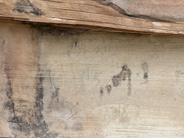 38) Wijiji Trail, Chaco Canyon National Historical Park, Pueblo Pintado, New Mexico, May 28, 2023 - Our next destination was Chaco Canyon. After rattling our teeth out with a 30 mile drive on washboard dirt roads to get to the campground we were ready to stretch our legs and calm our nerves. Across the road from the campground was the Wijiji Trail with curved along the base of a mesa to one of the 800 year old pueblo ruins. The "trail" was just a dirt road but the landscape was covered with wildflowers and provided the sort of vast panoramas that the desert southwest is famous for. In addition to the Ancestral Puebloan site there was also a rock wall decorated with petroglyphs. The highlight of the site itself was three story high north rock wall. A 3.2 mile out and back hike that was basically flat with only 50 feet of elevation gain.