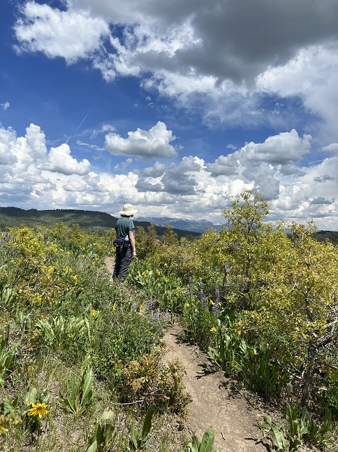 61) East Magnolia trail system, Nederland, CO, July 23, 2023 - Our friends Steve and Kristin drove up from Boulder to see us (and to escape the heat down below!) and, after eating lunch together, we went for a short wildflower walk. The Lollipop loop, combined with a short section of the Indian Peaks Traverse trail, provides a short hike around a hilltop which is partly open meadow and part tunnel through a row of pine trees. The variety of wildflowers in the meadow section was amazing and we all enjoyed spotting all the different flowers. An afternoon thunderstorm was rolling in and we timed our walk perfectly to get us back to the cars just as the thunder started shaking the ground. Not a big hike but it was a beautiful after-lunch stroll with some beautiful wildflowers to cap off a nice afternoon together. A relaxed 1 mile loop with a mild 150 feet of elevation gain.
