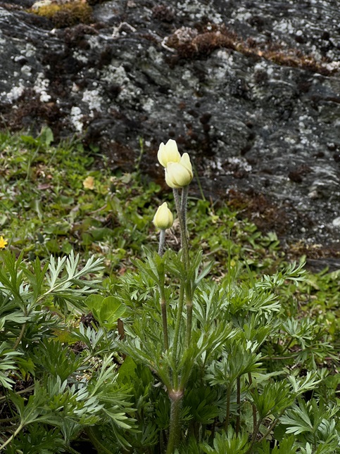 73) Anchor Mine, Caribou townsite, Nederland, CO, July 12, 2023 - Cousin Chi is starting CU-Boulder next week so she and her Mom, Alan's cousin Michelle, and her brother Sam came out a week early to get her moved into her dorm and to spend some time in Colorado. Jonna and Alan brought the family out for a hike up to the Anchor Mine (since Michelle's maiden name is "Anchors".) Most of the wildflowers had wilted away but there were still a few Indian Paintbrush and some Hare Bells that were hanging in there. This is probably the easiest hike in the area to get up to treeline so we also got to show them a little of the alpine tundra. Michelle was inspired to do some impromptu yoga beside a stream that winds among the mining buildings but then a passing rain cloud encouraged us all to head back down. We braved the cold shower and, as the clouds broke up, we were partially dry when we got back to the trailhead. A nice excursion into the mountains and a fun photo-op with the "Anchors" family standing next to the Anchor Mine sign. A 3.3 mile out and back hike with 450 feet of elevation gain.