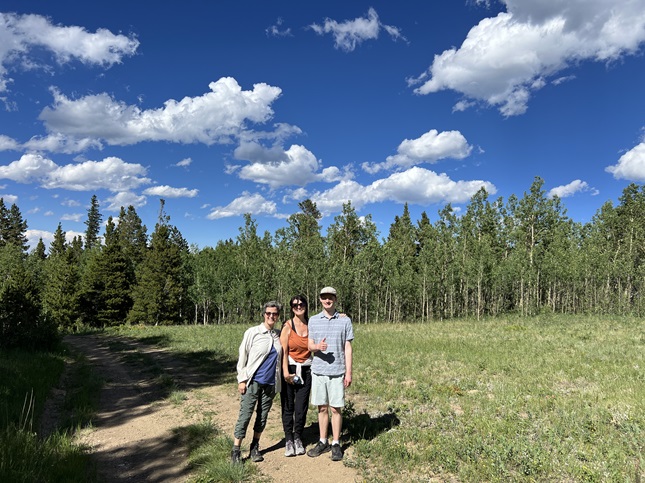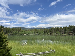 31) Mud Lake, Boulder County Parks & Open Space, Nederland, CO, June 20, 2024 - We enjoyed hiking the Mud Lake trail so much the previous day that we did it all over again. Our friend Linda stopped by our place on her way home from a long, semi-crosscountry, motorcycle trip. We wanted to show her a little glimpse of our beautiful part of the world so we brought her over to Mud Lake for a quick hike in the morning before she took off to resume her trip. We had the same gorgeous weather and scenery as our previous hike but also nearly empty trails so we could properly show off the place. We enjoyed getting to hike with Linda and hopefully she got a glimpse into why we love living in the mountains. An easy 2.2 mile loop with 250 feet of elevation gain. (Photo credit to Linda Cicero.)