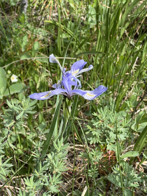 30) Mud Lake, Boulder County Parks & Open Space, Nederland, CO, June 19, 2024 - Our summer hikes have focused on catching up on hikes with friends and we continued that again this week when our friends Kristin and Steve drove up from Boulder to hike the "long" loop at neighboring Mud Lake. Once again the mountains delivered cool temperatures and a partly cloudy sky which made for perfect hiking weather. The summer wildflowers at our elevation were also in full swing with at least a dozen different varieties of flower visible during the hike with wild Irises and Colombines being my favorites for the hike. What was a surprise was how crowded the trail was - presumably because June 19th is now a Federal holiday which meant there were a lot of people with time off so they could enjoy the outdoors, but also because there appeared to be a kid's mountain bike camp going on with lots of very polite youngsters learning both the technical and social skills required to pedal in the mountains. We had a fun time catching up with our friends and thoroughly enjoyed seeing our local trail looking so nice. An easy 2.3 mile loop with just 250 feet of elevation gain.