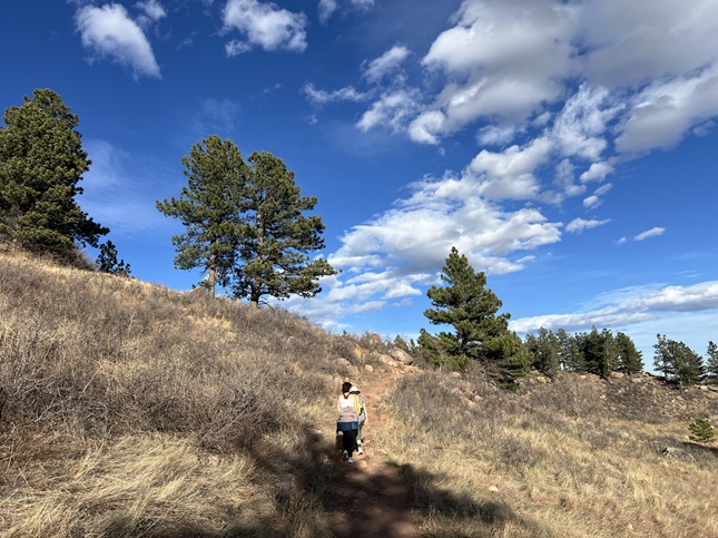 8) Nighthawk Trail, Hall Ranch, Boulder County Open Space Parks, March 22, 2025 - While we were in Asia our longtime friend Todd was also in that part of the world bringing his new fiancee Jha to the US from the Philippines. We all got together in Lyons so we could finally meet Jha. We picked nearby Hall Ranch for a hike and headed up the Nighthawk trail. It was a little chilly with a storm on the way but we had a sunny morning of hiking before the clouds rolled in. We hiked about halfway up the Nighthawk Trail before turning back to the trailhead. A nice hike but the real highlight was seeing Todd and Jha both so happy to be together. A 3.7 mile out and back with a rolling 600 feet of elevation gain.