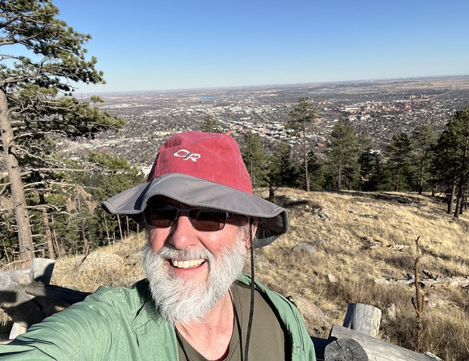 23) Anemone Point and Mt. Sanitas, Boulder City Open Space & Mountain Parks, Boulder, CO, March 25, 2026 - This was two hikes combined into a single morning. It started with Jonna and Alan joining our friend Julia at the Centennial parking lot to hike part of the Anemone Loop trail. We went up the Anemone Trail to the loop, then took the shorter route up to first Realization Point and then on up to Anemone Point. Rather than completing the loop once we got to the top we turned around and headed back down the way we'd gone up. We started hiking at 7:30am so we had both cool morning weather with temps in the mid-60s and low morning sun. When we got back down to the parking lot Julia had to get to work and Jonna had errands to run so Alan head out on his own to hike a new-to-him loop of trails. First was the Sunshine Canyon trail which just follows Sunshine Canyon road for a mile or so going west up the canyon. That trail ended at the Lion's Lair trailhead which starts the climb up the western side of Mt. Sanitas. This trail is just a long series of switchbacks which ended up spreading the roughly 1,000 feet of gain over about 3.5 miles of trail. The Lion's Lair trail eventually connects with the Mt. Sanitas trail just below the summit. By the time Alan got to the top of the mountain the temperature was climbing so it felt like a full blown summer hike with bright sunshine and warm air. Then it was down the Mt. Sanitas trail to get back to the Centennial parking lot where Jonna returned to pick up Alan. A nice, long hike and chance for Alan to hike two new trails! A 8.3 mile loop with 2,000 feet of elevation gain.