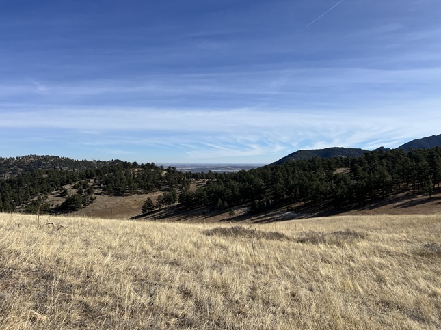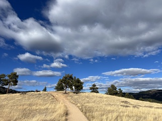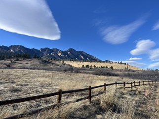 4) Homestead, Mesa, Upper Big Bluestem and Big Bluestem West Trails, South Mesa Trailhead, Boulder Open Space & Mountain Parks, Boulder, CO, January 18, 2026 - Our first hike of the year with our friend Desiree was on a beautiful Sunday afternoon with wind-swept clouds floating through a deep blue sky. The trails were, unfortunately, completely dry and hillsides were covered with tinder dry grass. We started at our traditional spot, the South Mesa Trailhead, and did a big loops going out on Homestead and Mesa trails before circling back on Upper Big Bluestem and Big Bluestem trails. The highlight of the hike was seeing an Abert's Squirrel with its big tasseled ears and long fluffy tail. We timed it perfectly so that we ended the hike exactly as the sun set behind the foothills. A 4.8 mile loop with 800 feet of elevation gain.