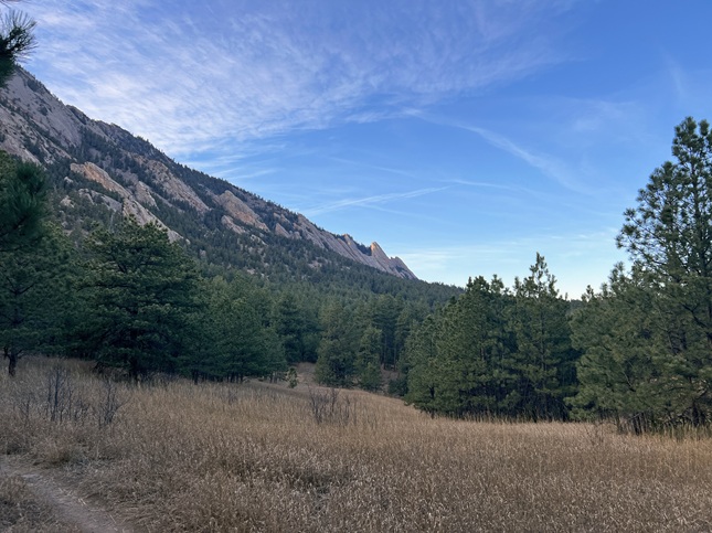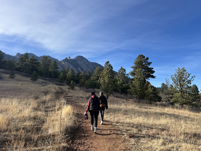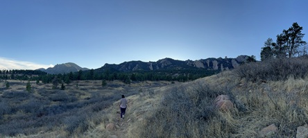 15) Homestead, Mesa, Upper Big Bluestem and Big Bluestem West Trails, South Mesa Trailhead, Boulder Open Space & Mountain Parks, Boulder, CO, Feburary 22, 2026 - On the Eve of Jonna's birthday we joined our friend Desiree for our regularly scheduled Sunday evening hike. As usual, we met at the South Mesa Trailhead and we did what is becoming our new normal for a hike. Going up Homestead Trail to where it joines Mesa Trail then taking the Mesa trail north to the junction with Upper Big Bluestem Trail. We then took that trail east to where it meets the Big Bluestem West Trail which goes south to re-connect with Mesa trail. We got back to the trailhead after the sun had set behind the mountains and the temperature started to drop which meant we were chilled when we got back to the cars. A 4.8 mile loop with 800 feet of elevation gain.