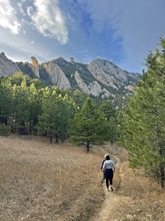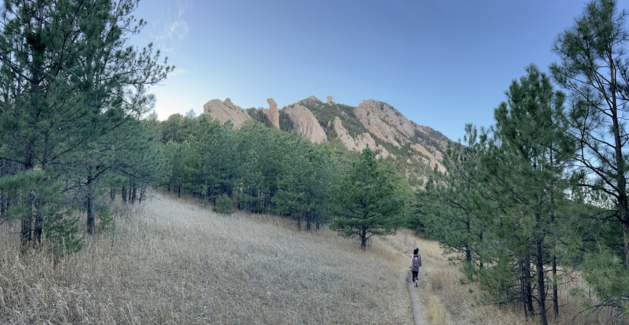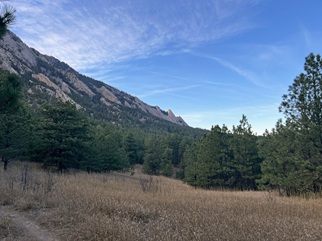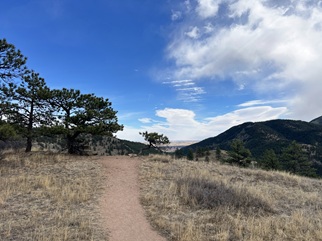 22) Homestead, Mesa, Upper Big Bluestem and Big Bluestem West Trails, South Mesa Trailhead, Boulder Open Space & Mountain Parks, Boulder, CO, March 22, 2026 - Another Sunday evening hike with our friend Desiree and another visit to what has become our "new normal" hike - Starting at the South Mesa Trailhead then going up Homestead Trail. Rejoining Mesa trail and taking that to Upper Big Bluestem trail. Finally, taking the Big Bluestem West trail back to Mesa Trail and using that to return to the trailhead. With the Spring time change and the longer days we decided to start at 5pm which meant the sun set early in the hike and we got back to the trailhead as dark started to settle in for the night. The big change since our last visit to the trailhead just a week ago were the trees that are starting to blossom along the trail. Sure signs that Spring is just around the corner. A 4.8 mile loop with 800 feet of elevation gain.