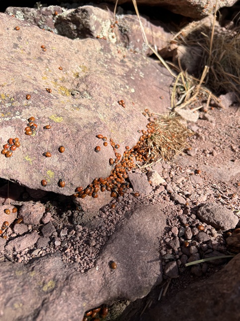 14) Green Mountain, Boulder County Open Space & Mountain Parks, Boulder, CO, February 15, 2026 - My stated goal a little over a week ago was to get in more hiking so build up the strength in my legs and I've definitely done that. My friend Todd and his wife Janeth joined me for a hike today. After hiking to the top of Flagstaff Mountain yesterday today we started at teh top of Flagstaff and climbed to the top of Green Mountain. The day was fantastic for hiking - temperatures in the mid-60s, sunny and only a few clouds in the sky. There were two signs that show just how unusual this winter has been. The first was when we reached the summit (via the Ranger and EM Greenman trails) and found swarms of mating lady bugs. I've seen this behavior on top of mountains in late March or early April - this year it is happening in mid-February. The second unusual thing was seeing hillsides covered in green grass. ...and not just fresh buds emerging from the ground but healthy, 6 inch long blades like what I'd expect to see in April. Wow. The views from the top were great and the trails almost entirely free of snow or ice. Just a few sections on the north side of the mountain where compressed snow/ice was on the trail. We descended via the West Ridge and Ranger trails to complete the hike. A 4 mile loop with 1,500 feet of elevation gain.