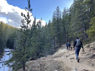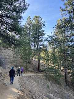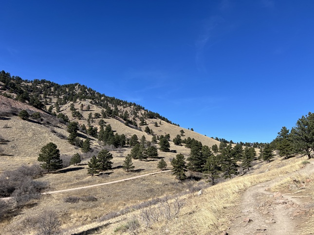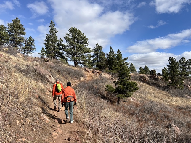 7) Canyon Loop, Betasso Preserve, Boulder County Open Space, Boulder, CO, February 4, 2026 - We get together regularly with our friends Steve and Kristin - often for lunch or to go for a walk around Boulder. However, every now and then, we go on a hike together and we took advantage of the mid-week "No Mountain Bikes" day at Betasso Preserve to hike there. We met up at the eastern overflow parking lot and then did a counter-clock hike around Canyon Loop. The weather was great for hiking (but terrible for our normal winter snow) and the trail was very lightly populated. We didn't see anything in the way of wildlife or unusual scenery or memorable moments but we all still felt lucky to live in such a beautiful place and to have the ability to get out to enjoy it. A 3.4 mile loop with 400 feet of elevation gain.