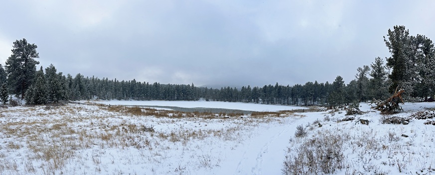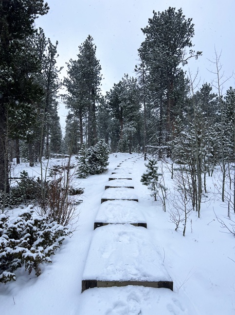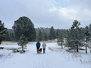 1) Mud Lake, Boulder County Parks & Open Space, Nederland, CO, January 8, 2026 - For our first hike of the new year we met up with our friend Holly and her pup Mikyo. We met up at the back entrance to the Mud Lake Open Space, on County Road 128W, and did both the Kinnickinnick Loop and Tungsteen Loop. We were in the midst of a snow storm with about 4 inches of fresh powder on the ground and more falling while we were hiking which gave us a cold but beautiful snow covered forest to enjoy. The weather also kept other hikers off the trail so we only saw a couple of other people. A nice way to start off our 2026 hikes! A 2.3 mile loop with 250 feet of elevation gain.