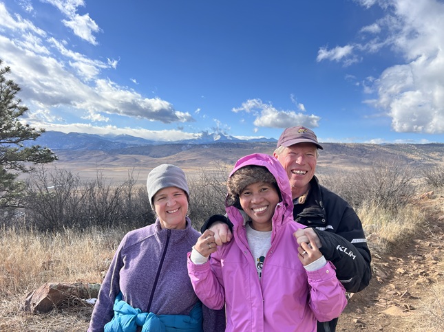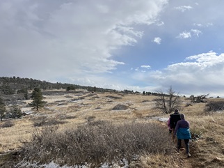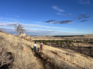 2) Eagle Wind Trail, Ron Stewart Preserve at Rabbit Mountain, Boulder County Parks & Open Space, Lyons, CO, January 9, 2026 - We traded the fresh snow in the mountains for the dry hills down below for our second hike of the year. For this one we met up with Todd and Janeth at Rabbit Mountain Open Space to hike the Eagle Wind Loop trail. There were a few patches of snow but the ground was mostly dry. The temperature was hovering just below of freezing but thankfully there wasn't much wind and there was a little sun so the weather wasn't too bad for hiking. The views onto the Front Range was fantastic with the snow-covered mountains peeking in and out of some low lying clouds. We watched a hawk hunting in the grasslands and saw a few other hikers but mainly enjoyed a quiet trail. A 4 mile loop with 350 feet of elevation gain.