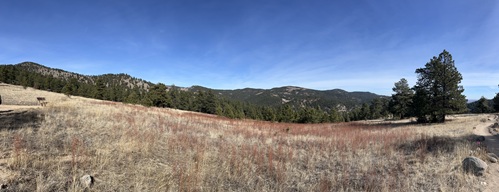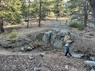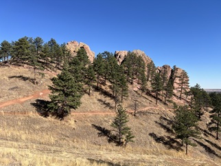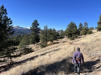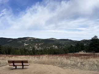 3) Canyon Loop, Betasso Preserve, Boulder County Open Space, Boulder, CO, January 15, 2026 - After running errands down in Boulder, Jonna and Alan stopped by Betasso Preserve on the way back up the canyon to hike the main Canyon Loop. It was a beautiful day - warm and sunny - which is usually a good thing but given how little snow we've had this winter and how dry the ground is turned out to be a sad thing. Nonetheless, we had nice views from the high points on the trail looking down onto Boulder and got to see a family of deer nibbling the dry grasses. A nice place for a quick leg stretcher and on Wednesday there it is pedestrian and equestrian only so we didn't have to dodge mountain bikes. A 3.4 mile loop with 400 feet of elevation gain.