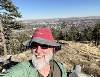 10) Flagstaff Mountain, Boulder City Open Space & Mountain Parks, Boulder, CO, February 8, 2026 - Jonna's brother Jamie came out to visit us in Colorado so shortly after we picked him up from the airport we were strapping on hiking boots and taking him out for a hike - specifically the second of my annual Spring Training Hikes. Our friend Desiree joined us at Eben G. Fine park in Boulder. We started by climbing up the Viewpoint Trail to Panorama Point then changing over to the Flagstaff trail for the ascent all the way to the summit. Along the way, first Desiree and then Jonna turned back leaving just Jamie and Alan to complete the climb. Once on the top, we took the Rangeview trail to the west side of the mountain so we could enjoy the views of the Continental Divide, then took the Ute trail back to the summit to complete a loop on top. Then we backtracked down Flagstaff and Viewpoint trails to the trailhead. The weather was again unseasonably warm and the trail was dry dirt for almost the entire hike...good for hiking but still frightening for our snow levels. On the plus side, this trail is usually a muddy mess but this year it was so dry it was dusty! A 6.6 mile up-and-back hike with 1,800 feet of elevation gain.