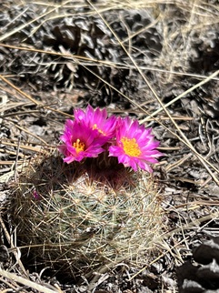 26) Old Sleepy Lion, Sleepy Lion, Button Rock and Nighthawk Trails, Button Rock Preserve and Hall Ranch Open Space, Lyons, CO, April 4, 2026 - Friend Todd and Janeth came up with the idea of a long hike from the Longmont Reservoir Dam to Hall Ranch Open Space by stringing together four different trails. I was up for the challenge so met up with them at Hall Ranch on a chilly Saturday morning where we left a car and then drove over to the Longmont Reservoir just outside Lyons. From there we started by hiking up the Old Sleepy Lion trail which is a little used trail in the Button Rock Preserve that climbs up a steep hillside that gives a nice view down into the North Saint Vrain Creek valley. We then met up with the Sleepy Lion trail and used that to climb further up until we met up with the Button Rock Trail. This trail provided the most impressive scenery of the hike with great views of Mt. Meeker and Long's Peak to the northwest. We also spotted a couple of herds of deer, some wild turkeys, flowering barrel cactus and even a hillside sparkling with mica. Button Rock Trail broght us into Hall Ranch Open Space where we connected with the top of the Nighthawk Trail. We used that trail to drop down the 1,500 feet from the highest point of the hike down to the Hall Ranch trailhead where we'd met up in the morning. The weather was great, warming up just enough to make for a comfortable hiking temperature and with only a slight breeze to cool things down at the times we needed motivation to keep us moving. The skies were clear and we had enough sun that we all had pink cheeks when we finished the hike. A 9.3 mile one-way hike with 1,300 feet of elevation gain.