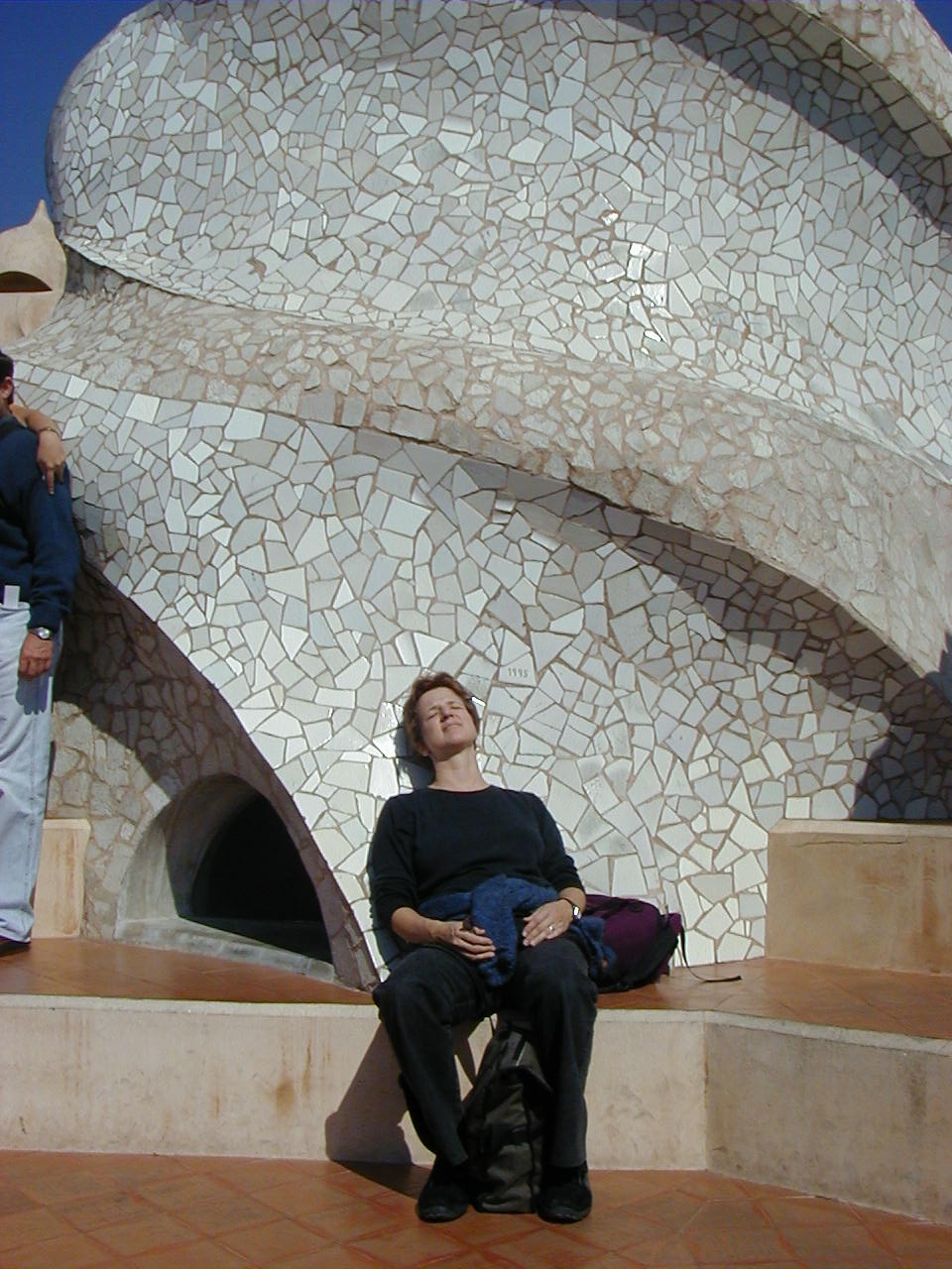3) Jonna leaning up against one of the mosiac walls on the roof of La Pedrera. There were a lot of students on the roof all drawing the strange shapes found up there.
