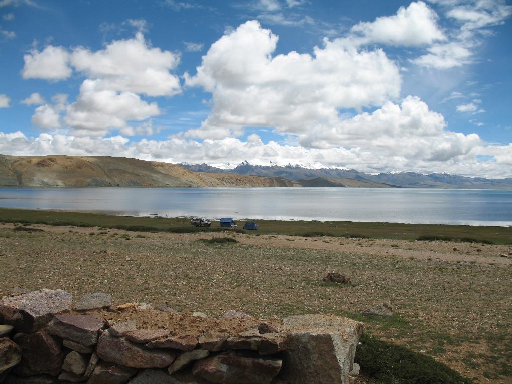 2) This photos shows our camp site. We actually camped two nights on the shores of Lake Manasarovar. Again, the sense of scale is overwhelming. The lake is huge and is ringed with enormous snow capped mountains. You can see mountains in Tibet, Nepal and India from this lake, so you really feel like you are on top of the world.