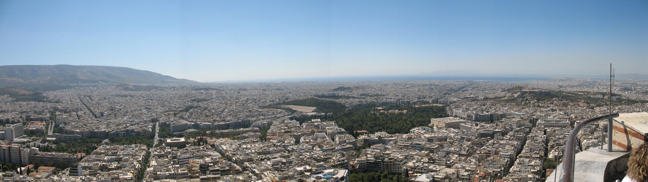 16) This panoramic photo was taken looking south from the top of Lykavitos Hill and shows the sprawl of Athens. The Acropolis is on the far right of of this photo and the Temple of Zeus is just to the right of center.