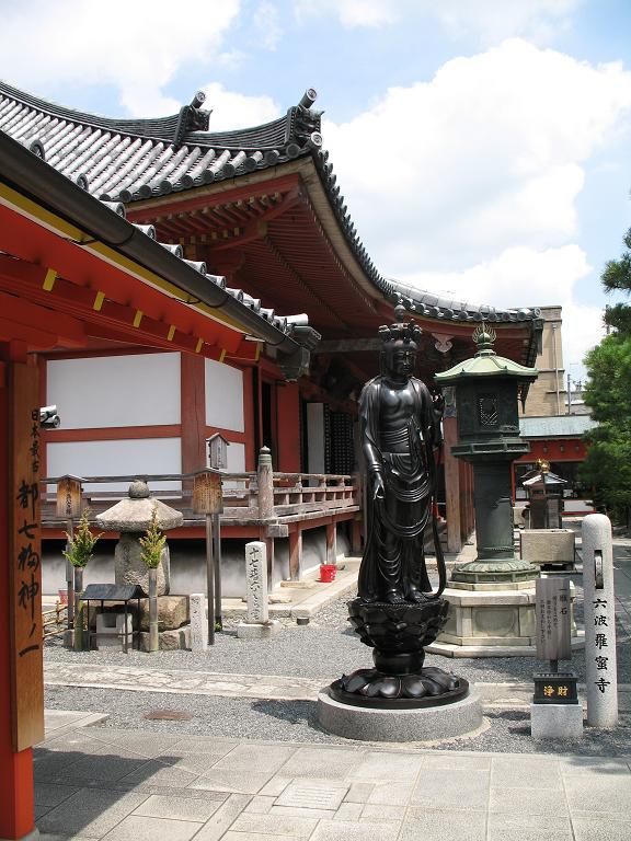 31) We took an Asian art class in Boulder and one of the pieces we studied was a statue of a Buddhist monk chanting with the chant made visible as small buddha's coming out of the monk's mouth. It turns out that statue is in Kyoto at this temple. We visited the small Rokuharamisu-ji temple. As has become the norm, the main hall was under construction but the famous statue of Kuya was on display behind these buildings.