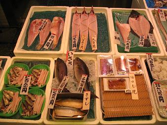 9) We used our last bit of energy for the day walking through the 1/4 mile long Nishiki Food Market. This covered street houses over a hundred food shops, all wish storefronts wish displays alongside the central walkway. It was a fascinating place...exotic fish, odd vegetables, unrecognizable herbs, mysterious prepared dishes. It was mesmerizing to just walk along trying to take everything in.