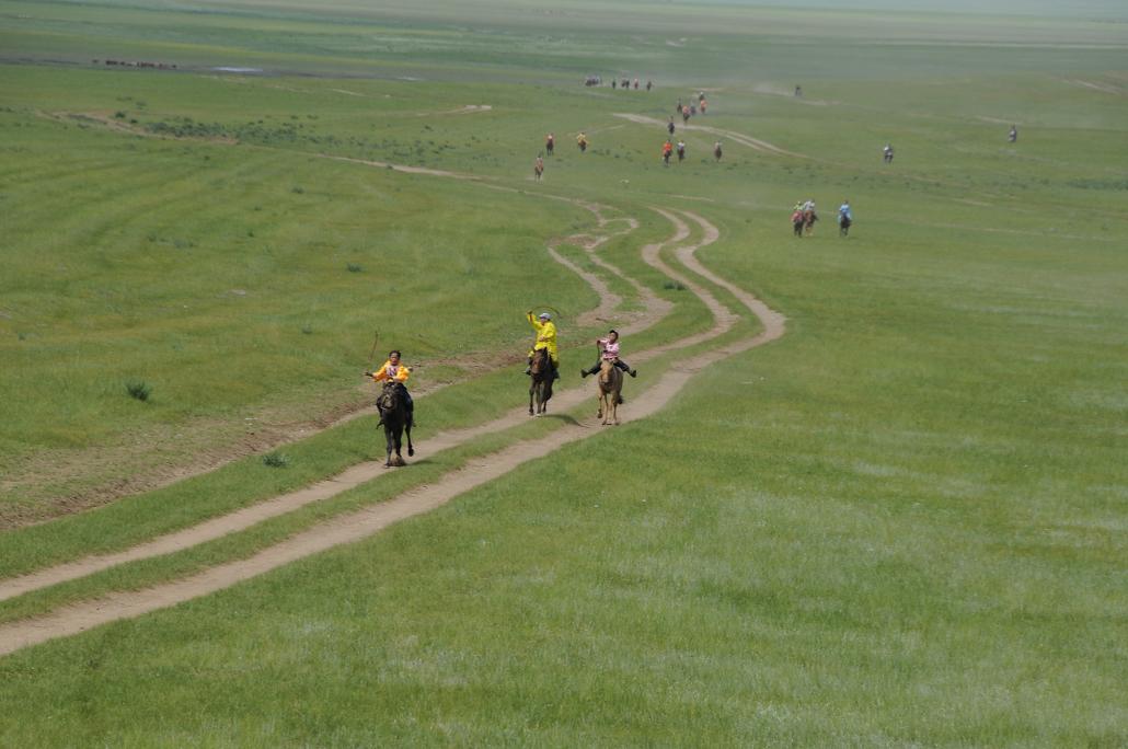 25) Finish line of the horse race at the country Naadam. Children aged 5-12 ride horses for up to 25 miles.