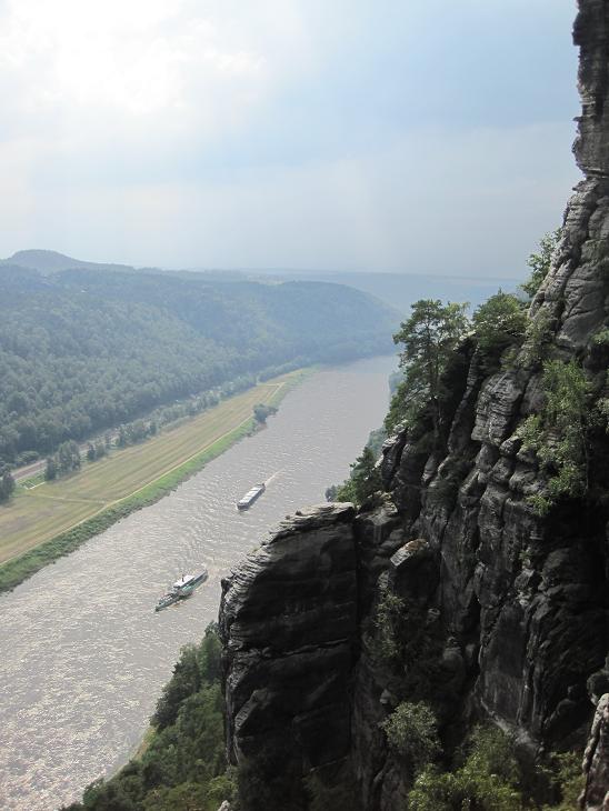 2) One of the scenic side trips of the trip was to the Bastei, a series of sandstone rock formations which overlook the Elba river. We hiked out to a point where we were able to see both the beautiful rocks and the river down below.