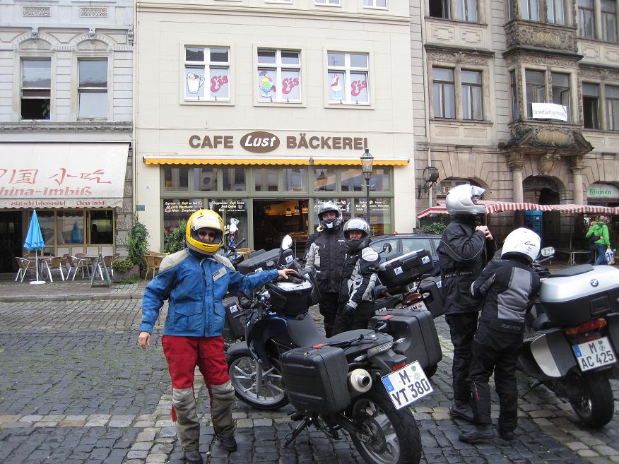 10) Our fourth riding day had us crossing multiple borders as we went from Germany through Czech Republic and into Poland. Here we are reloading the bikes after lunch at Cafe Lust in Zittau, Czech Republic.