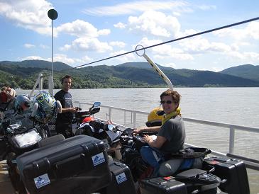 7) Taking a ferry across the Danube on a beautiful day with Toby - one of our Edelweiss guides. This ferry crossing was at Visegrad, Hungary on the penultimate riding day.
