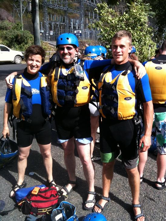 11) After our rushed tour of downtown Syndey, we got back to the airport and caught our flight up to Cairns. We arrived at our hotel at midnight and then awoke at 6am for our first adventure as part of the REI tour: A day of white-water rafting on the Tully River. Here we are suited up and ready to paddle. Visible behind us is the Kareeya Hydro Power Station whose Koombooloomba Dam controls the water level on the river allowing for rafting even during the dry season.