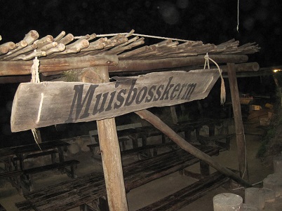41) Our dinner in Lambert's Bay is deserving of it's own photo. On the beach just south of town is Muisbosskerm The restaurant is open air - not really a building at all just three "walls" made of woven brush branches with the fourth side open to the beach. Inside is a huge pit where wood is piled and burned to create an open oven. Large cast-iron kettles are used to cook vegetables, seafood and to bake bread. Jonna declared it the best meal of her life.