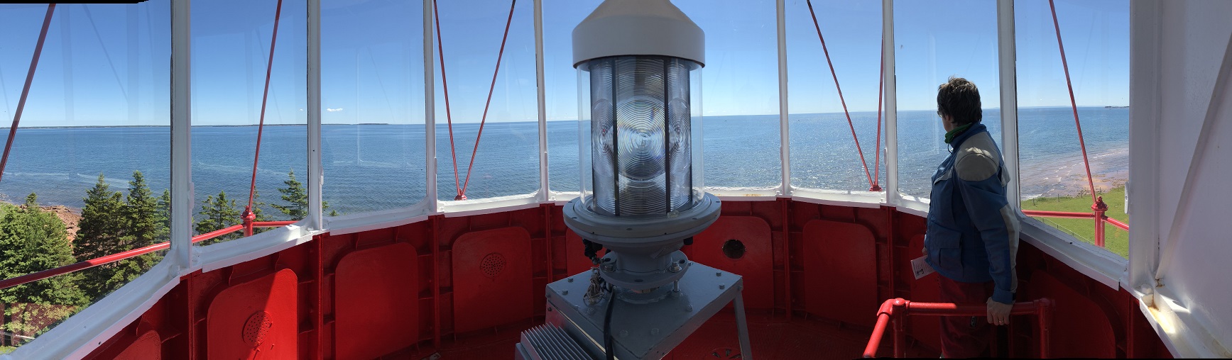 54) The next morning we were up early and onto a ferry over to Prince Edward island. Once off the ferry we chose to do a scenic ride around the eastern coast of PEI on the Points East Coastal Drive. Beautiful! We stopped frequently to see some of the lighthouses along the coast including the stunning Panmure Island lighthouse.
