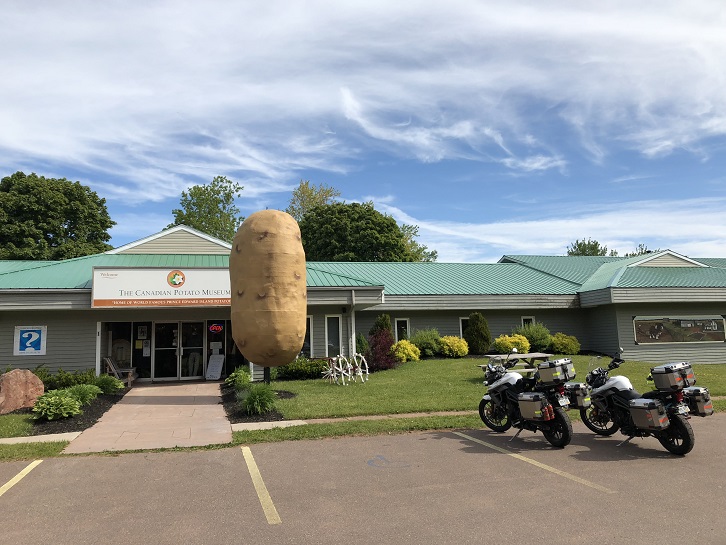 56) Our second day exploring PEI was focused on the western half of the island. Our first stop was a morning visit to the Canadian Potato Museum in O'Leary. In addition to boasting the world's largest potato sculpture it also had a surprising interesting and informative museum about the history of potato farming on Prince Edward Island. From there we continued the scenic drive theme by following the north Cape Coastal Drive eventually cutting across the island to the southern coast.